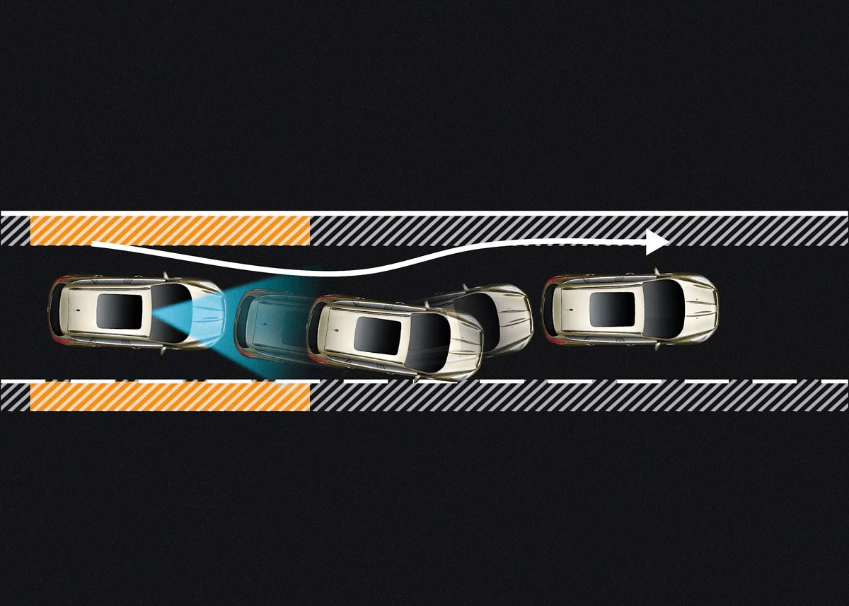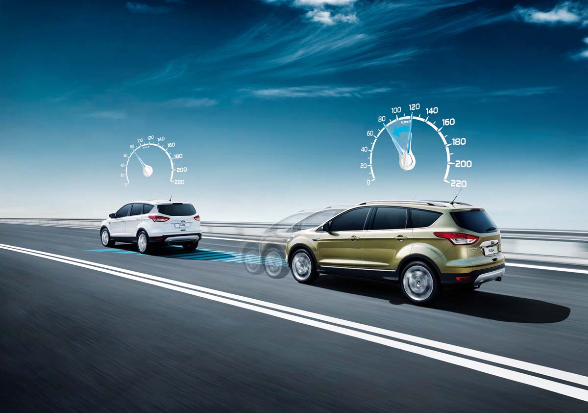 | 主動式定速巡航系統提供五種間距設定,可讓Kuga本身跟隨著前車速度自動維持適當距離,且只要當長距離雷達偵測發現碰撞可能時,前向碰撞預警系統就會立刻警示,並儲備必要煞車力道,大幅降低追撞前車危險。 |