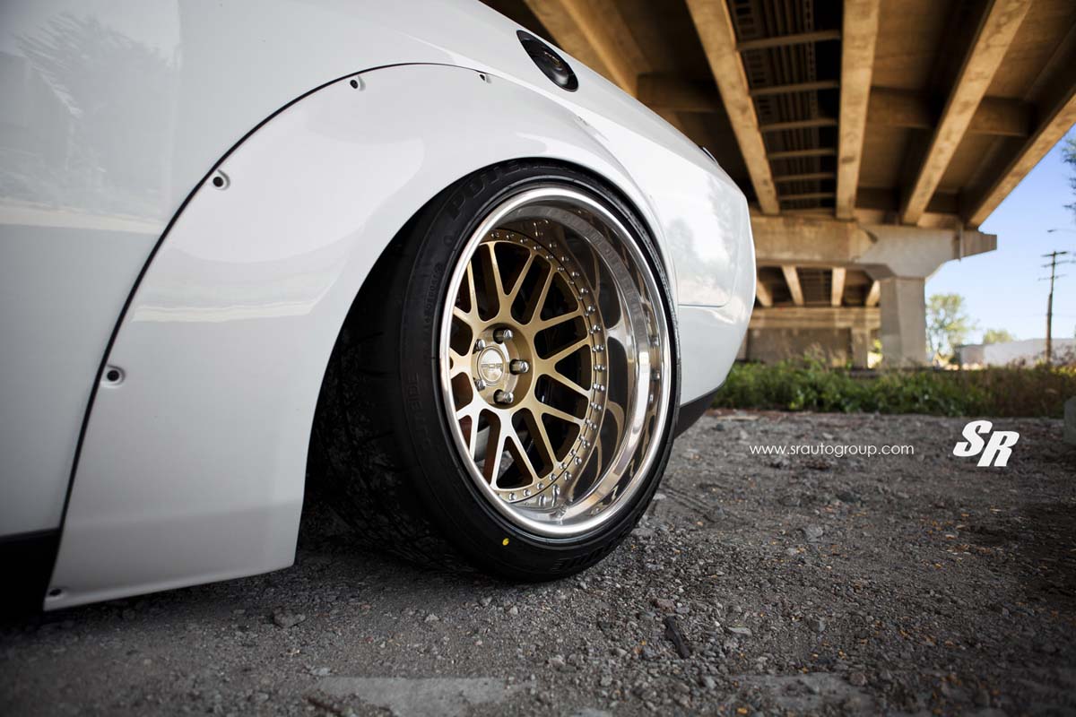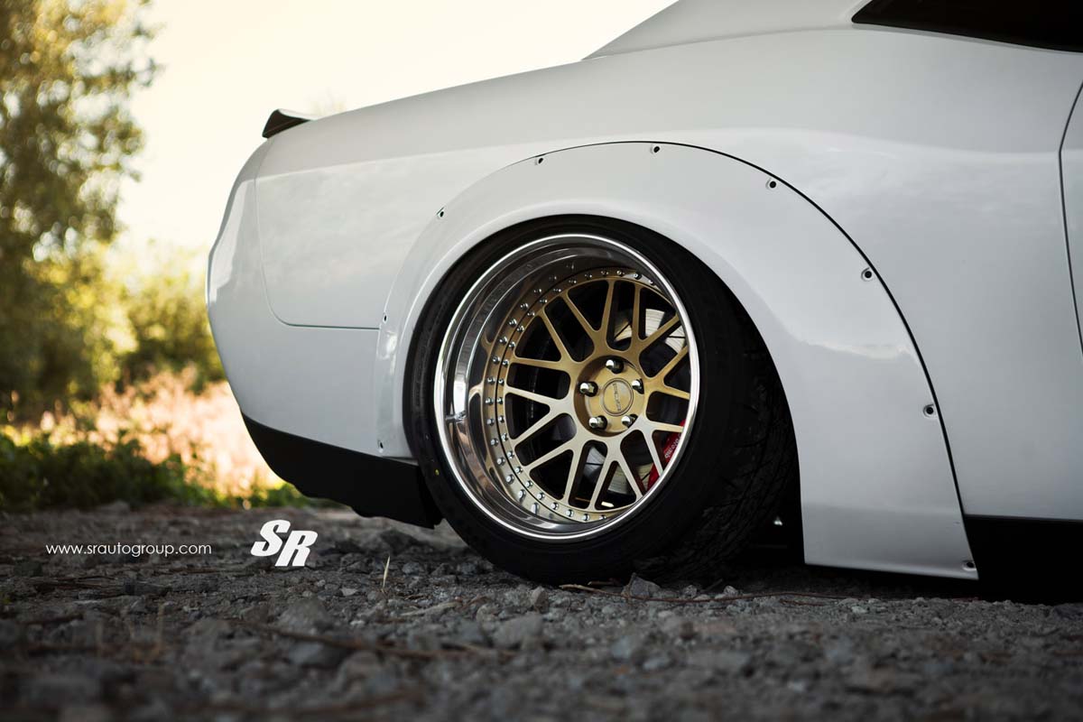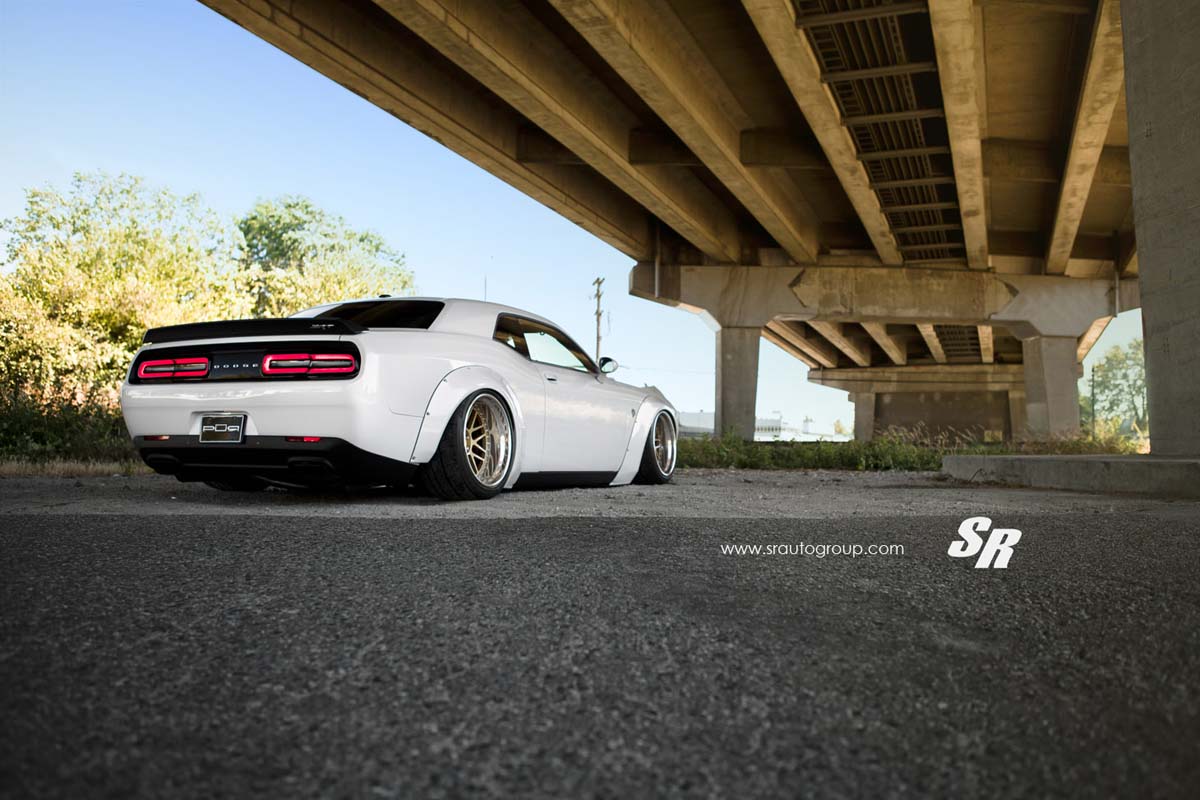暴龜潮持續延燒,由SR Auto Group操刀的Dodge Challenger Hellcat,改裝日本知名Liberty Walk車身寬體套件,讓Dodge Challenger Hellcat更有肌肉車的氣勢。改裝由Liberty Walk推出的前後寬體葉子板,而暴龜套件一裝上去之後,原廠車高感覺有些不協調,於是改裝Airrex氣壓避震器使車高大幅降低;車變寬、車身降低之後,原廠鋁圈卻像大人穿小鞋一般,因此SR Auto Group為其換上PUR LG01鋁圈,採用金色圈面、拋光圈唇的設計,20吋的規格正好把輪拱整個塞滿,讓Dodge Challenger Hellcat有著截然不同的肌肉風格。