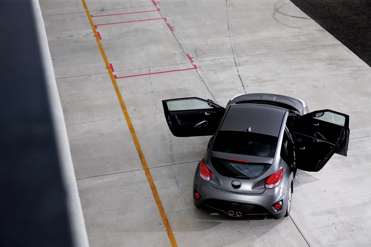 | 2+1門是Veloster Turbo身上個性化與便利性的設計亮點之一,消光灰則為熱銷車色。 |