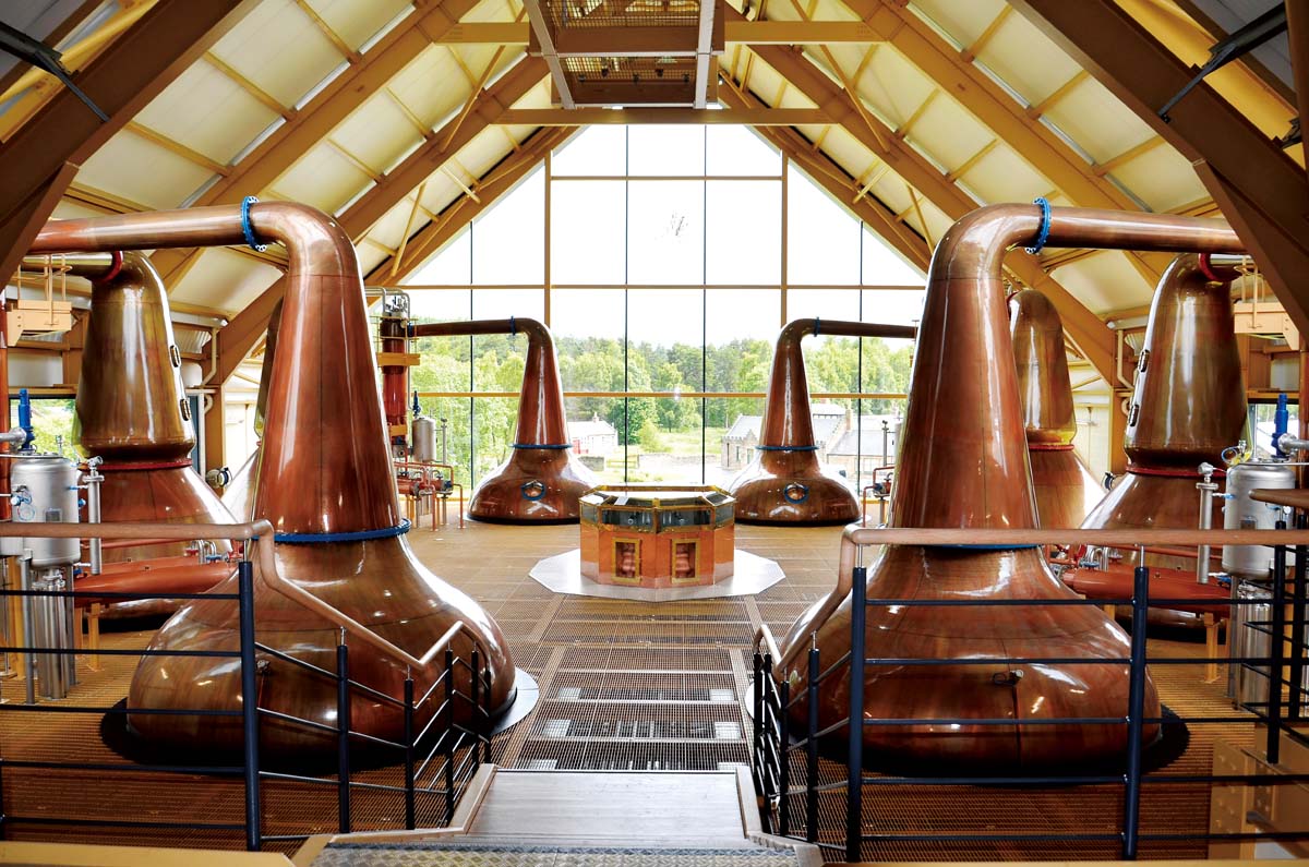 若非空氣中飄散著淡淡大麥蒸煮香氣,光從雅緻的外觀判斷,你會誤以為Dalmunach是斯佩塞區的觀光景點。不僅是外觀設計別緻,甚至蒸餾器區的更是以大麥捆束的形狀為概念設計(大麥收成時農夫將大麥集中捆成束,以利搬運),在閃著紅色金屬光澤的銅製蒸餾器中央,正是蒸餾區最秘密的核心-蒸餾酒液匯集區,對於熟稔製酒的專業人員來說,觀察各區域所收集的酒液比例就能概略推敲出該酒廠蒸餾階段的「不傳之密」,能夠如此近距離的拍攝,已經是廠方的最大限度了!