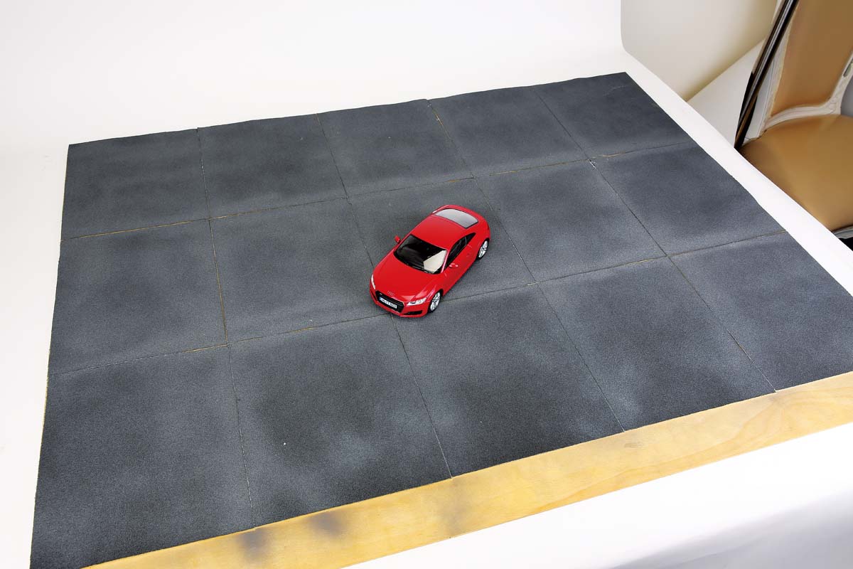 在上一期8月號中,我們只強調如何運用攝影的手法以及正確的使用相機,來讓手中的模型車可以達到幾乎擬真的照片,而若是要真正無法看出這是部模型車的破綻,那麼還需要考慮到許多細節,如背景的比例、光影的強弱、車身鈑件的、甚至是本期將為讀者們介紹的入門重點〈路面建置〉,都是讓模型車照片如同實車一般逼真的關鍵,因此接下來就讓我們從如何建置符合模型車比例大小的柏油路開始吧。