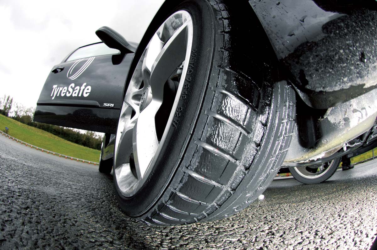 | 德國馬牌輪胎在胎邊設計雨滴記號標註3mm胎紋警示線,胎紋剩下3mm時,性能將下滑至新胎的75%,煞車時間與距離也會隨之增加。 |