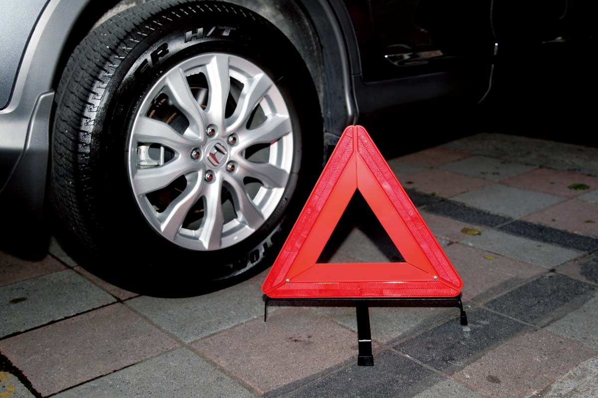 | 遇上爆胎並將車停放於路肩後,務必請乘客在紐澤西護欄外或遠離停放車輛的安全位置等待救援,然後於車後方100公尺左右地點置放三角故障標誌。 |