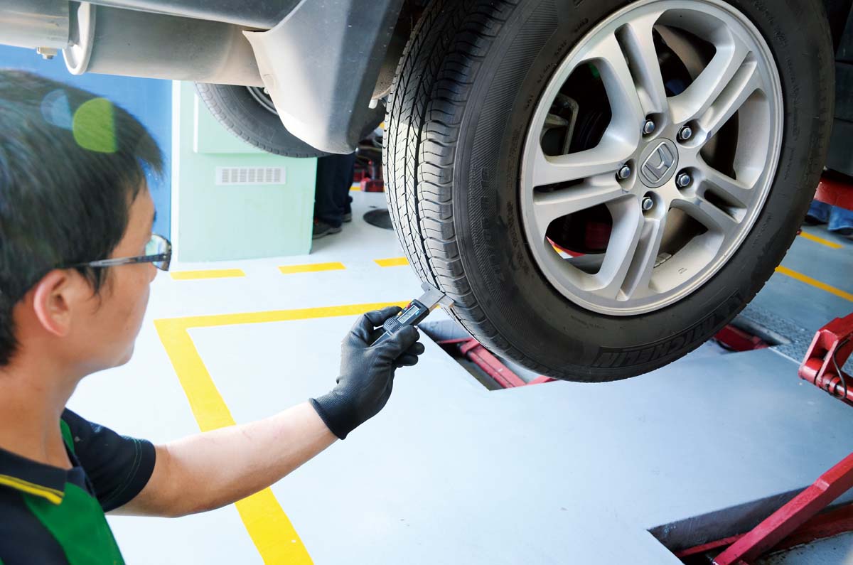 | 量測胎溝也是必要的功課,根據德國馬牌資料指出,輪胎性能會隨著胎紋磨耗而逐漸下滑。 |