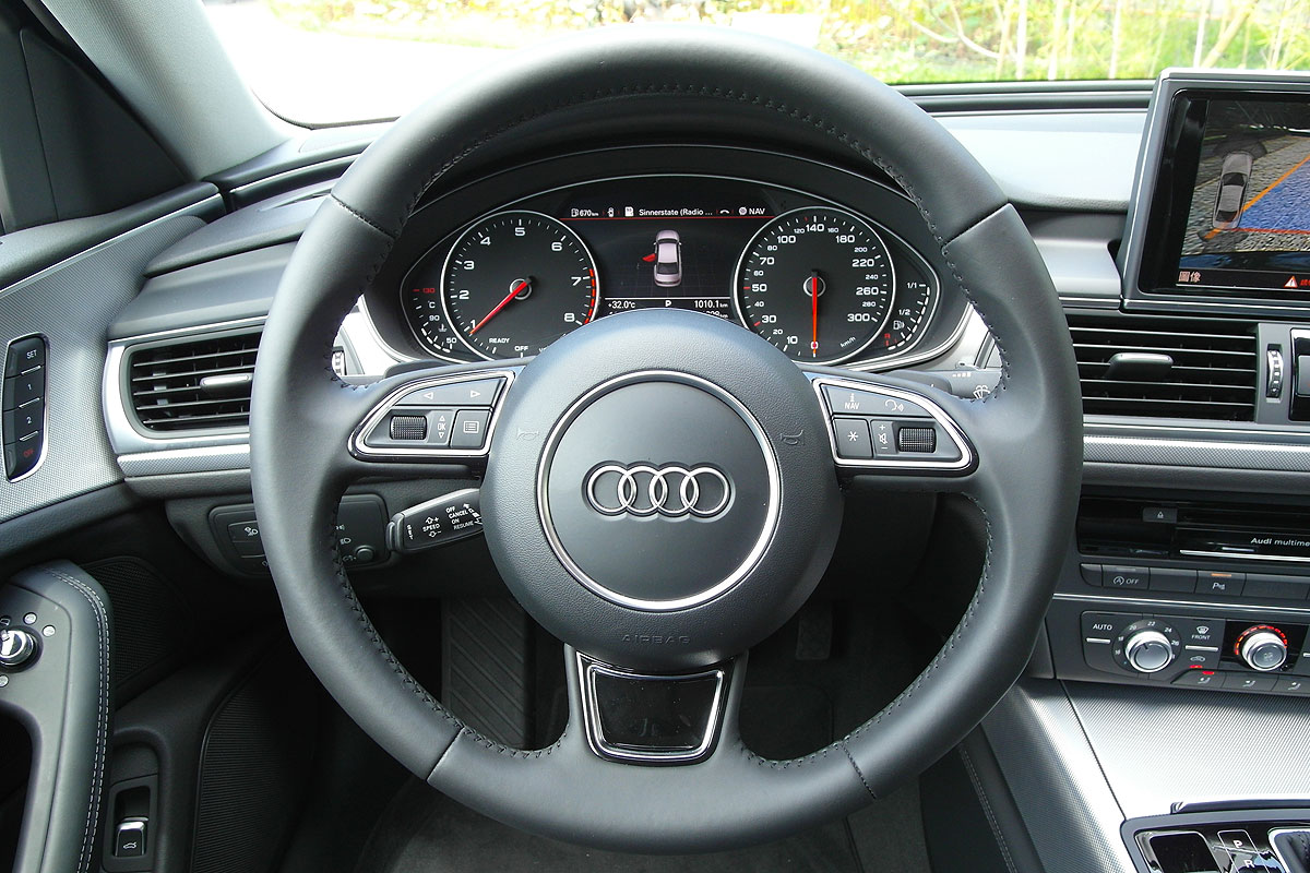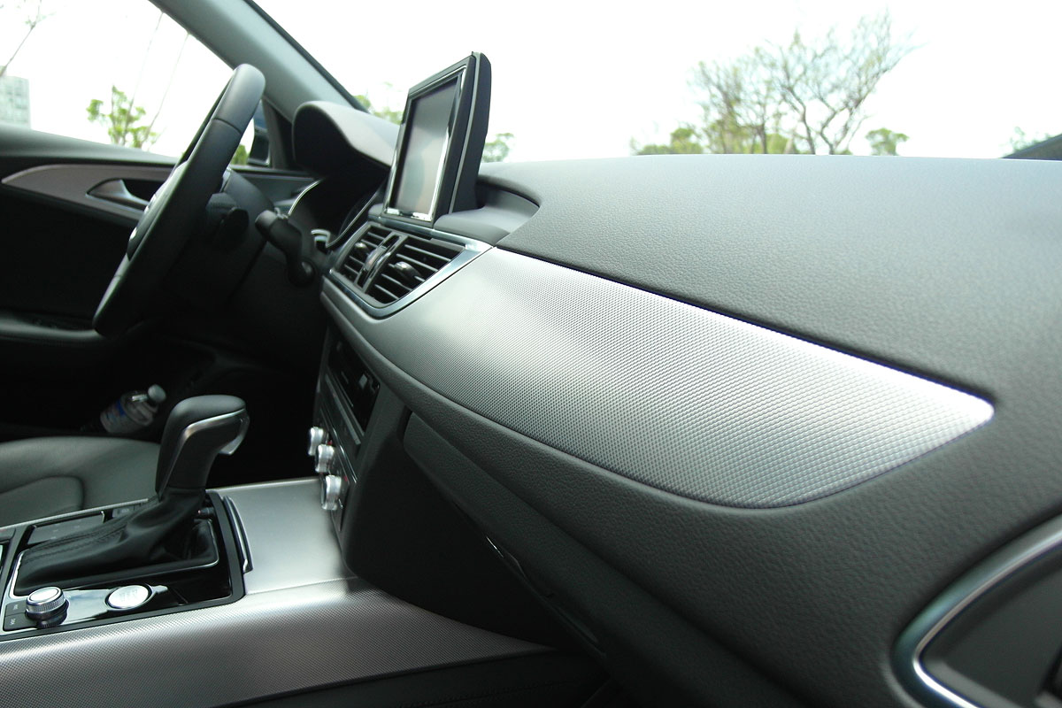 比起同級對手,Audi A6內裝用料皆屬高級上乘、組裝密實細緻亦令人印象深刻。人身手接觸的方向盤、排檔桿及座椅皆採觸感柔嫩的真皮材質,非以人造皮偽裝華麗。塑件多數採軟質膠料、織物絲絨般的觸感亦佳,少見廉價的硬塑膠拉低身價。