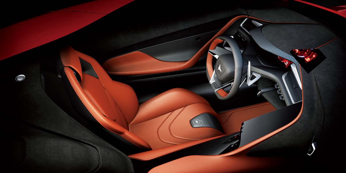 | 內裝以大量碳纖維材質與麂皮進行鋪陳,營造絕對肅殺的戰鬥性能味。 |