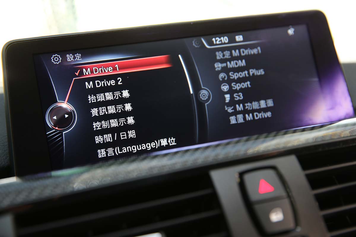 | 方向盤回饋力道、避震器軟硬、換檔速度到引擎出力限制都能藉由中央扶手上的iDrive選鈕來設定,除此之外三幅式方向盤的左方的M1&M2按鈕更是像GT6般趣味性十足。 |