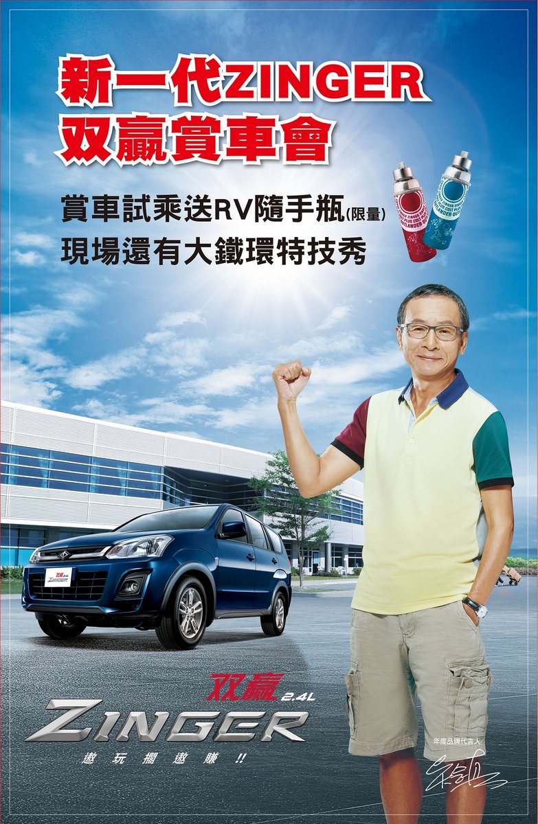 【焦能義/整輯】隨著年底選情加溫,候選人為尋求支持,紛紛全台下鄉造勢。本月初全新改款的双贏ZINGER 2.4L 以堅強的八大優勢動力強、空間大、尾門寬、車廂平、空調冷、安全佳、外型美、油耗省,甫上市即成為頭家們口耳相傳的熱門話題,即日起於全台舉辦八場頭家見面會,以實際行動力讓頭家就近賞車試乘就送限量RV隨手瓶,還有精彩絕倫的大鐵環特技秀,及熱情有勁的ZINGER GIRL為頭家們加油打氣,歡迎來同樂!