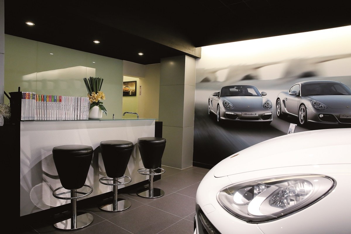 | 位於敦化北路林蔭大道上的PORSCHE總代理認證中古車展示中心,裡頭滿是誘人垂涎的各式PORSCHE車款。 |