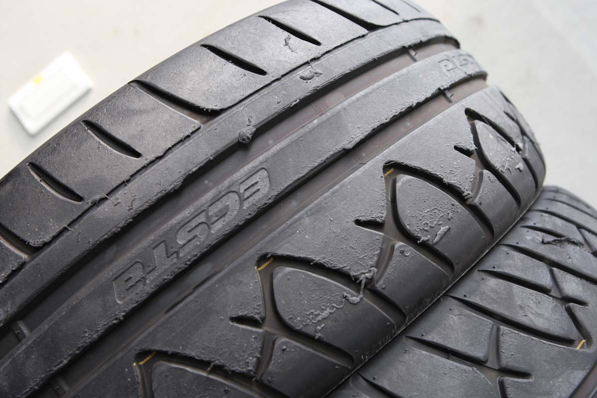 | 目前市面上逐漸流行的不對稱輪胎,其優點在於外側胎塊可朝大面積設計,提供更高的過彎極限,不過由於調胎只能前後更換,因此萬一吃單邊的話可是沒得救的。 |