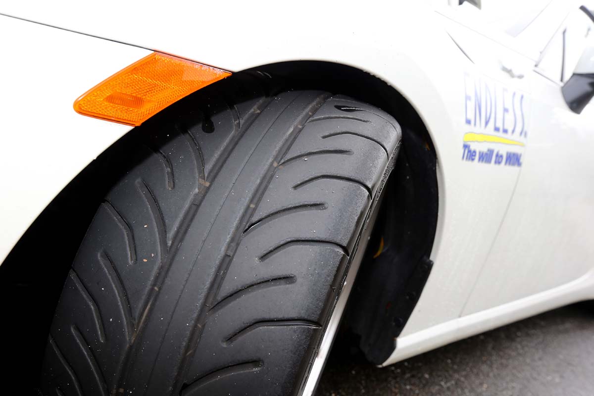 這條胎的感受與路面給的回饋其實跟AD08R相當接近,在這個半乾的地面駕駛著手排FR-S,原廠200hp的動力讓人可放心的試探車輛極限,3檔的大彎也可以放心的含著油門通過,大量減速通過1檔的髮夾彎後全油門出彎,過程中完全沒有聽到輪胎的慘叫,就像一把銳利的刀刃劃過西瓜,連續的S彎道也不見車體有多餘晃動,由此可見胎壁的支撐力相當好。