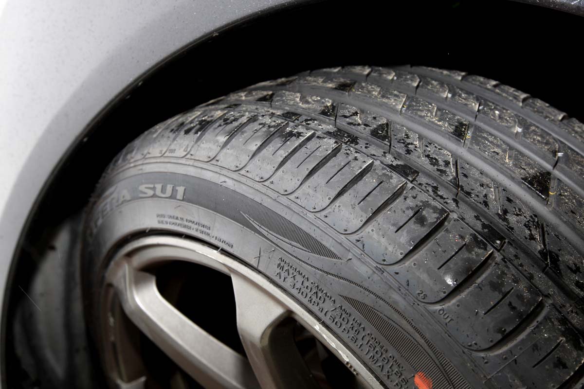 對於一部馬力超過300hp的WRX來說,使用Roadstone SU1會不會不夠用?實際上路後發現如果平常很少跑山路,只偶而直線加速紓壓一下,這條輪胎絕對夠用,且即使在山路上行駛,在四輪平均分擔動力的情況下,這條輪胎也可以很稱職的抓住地面,以稍快的速度丟入彎道中,也不用擔心會有明顯的推頭情況。滾動噪音幾乎沒有,排水性相當不錯,是一條表現相當平均的街胎。