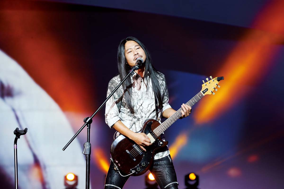| 金曲歌王亂彈阿翔在發表會場演唱,炒熱現場氣氛。 |