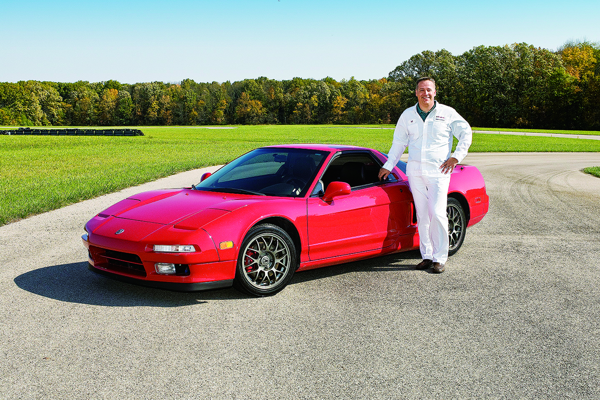 | Ted Klaus在1990年底特律車展第一次看到NSX發表,當時便被NSX獨特的造型設計所驚豔,之後不到一年時間他便加入了Honda。圖為Klaus與初代NSX合影。 |