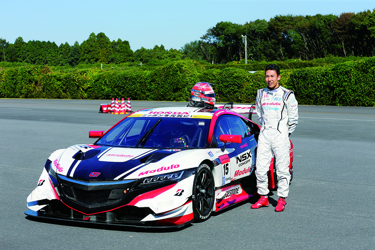 | 試駕過程中的驚喜:隸屬Drago Modulo Honda Racing車隊的Takashi Kogure(小暮卓史)突然駕著GT500戰駒NSX Concept-GT現身! |