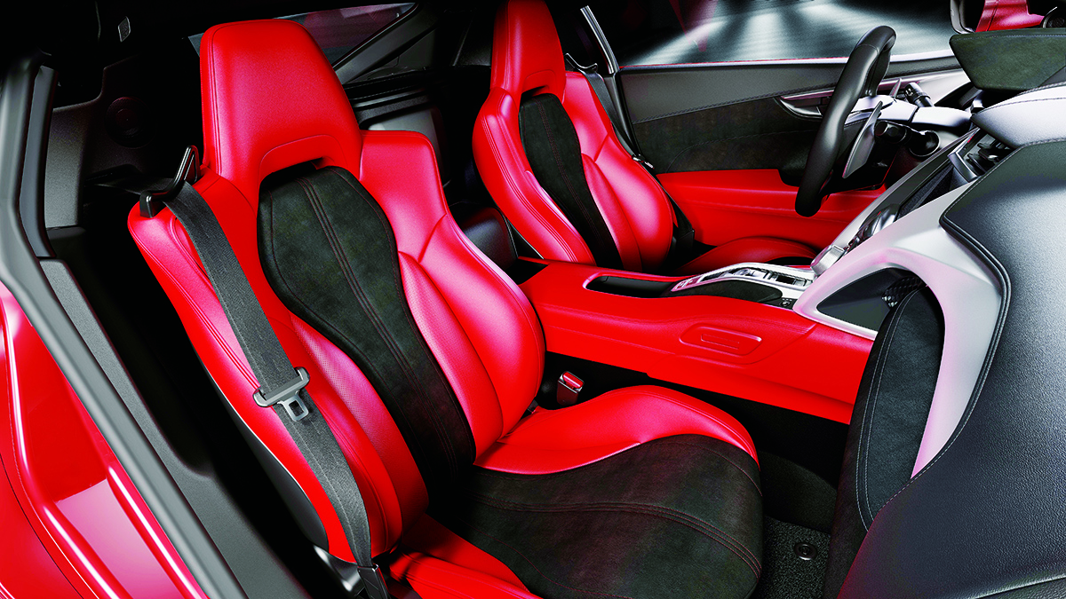 | NSX雖採中置引擎設定,但在乘坐空間上仍發揮MM理念(車室空間極大化與機械空間極小化),車廂高度可符合美國男性95%的身高範圍。 |