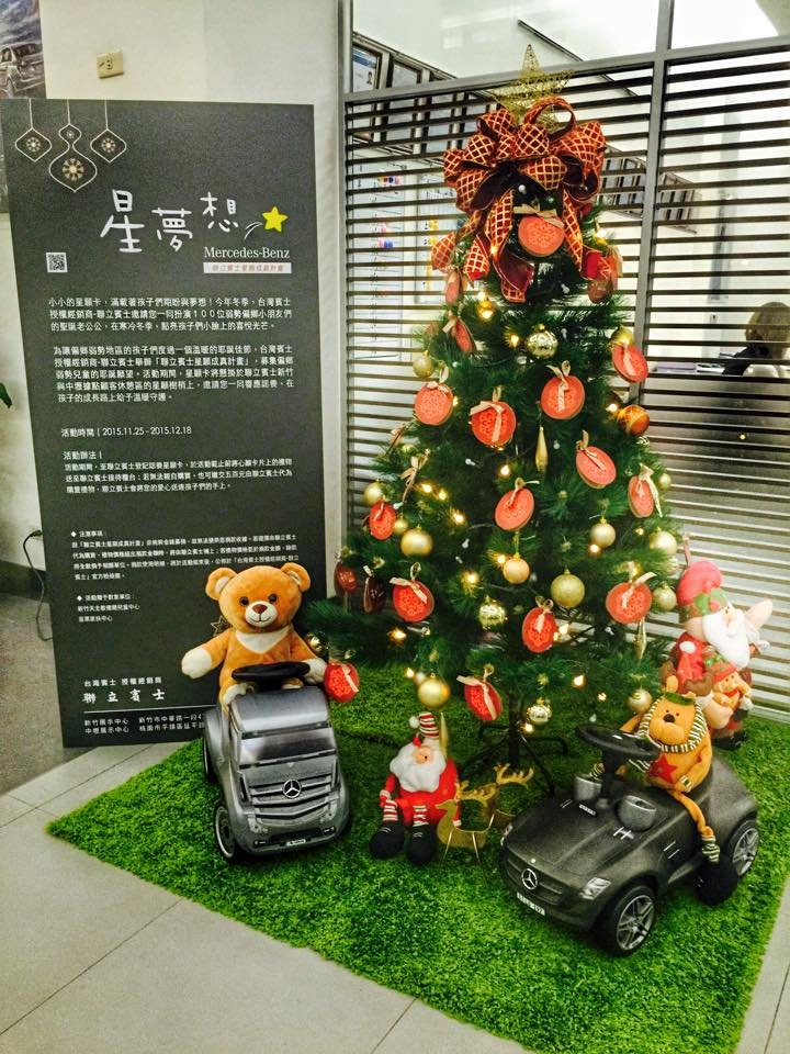 即日起至12月18日止,聯立賓士「星願成真」計畫會將所募集到的偏鄉弱勢兒童的耶誕願望,紀錄在「星願卡」上,並懸掛於聯立賓士新竹與中壢據點顧客休憩區的星願樹梢,邀請所有希望為孩子們盡一份心力的善心民眾,至聯立賓士登記認養。活動期間內,將心願卡片上的禮物送至聯立賓士接待櫃台;若無法親自購買,也可繳交五百元由聯立賓士代購禮物,若禮物金額超出捐款金額,則由聯立賓士捐款補助。不論何種方式,聯立賓士將會把民眾的愛心,親手傳遞給新竹天主教德蘭兒童中心及苗栗家扶中心的孩子們手上,讓他們也能在寒冷的冬天,感受到希望與一份最真實的溫暖。