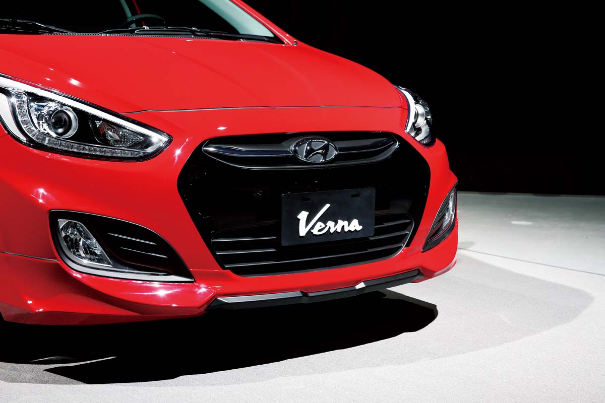 月前Hyundai總代理南陽實業正式在台推出全新小型四門房車Verna,一場世界前五大品牌怎能沒有四門小房車之爭,終於在台灣上演。Verna擁有雅緻型、尊爵型、旗艦型三大車型,而根據外觀設計不同,又可細分為時尚與酷跑兩車款,總計5種車型售價自55.9萬起,詳細售價規格可參考本期最後的車型規配表。透過流體雕塑設計概念打造的Verna,在車身上擁有多處立體折線,加上六角形進氣壩、鷹眼造型頭燈、小鴨尾造型行李廂蓋,讓Verna無論是車頭、車尾,都呈現出一派年輕動感的氛圍。酷跑款相較於時尚款,在外觀更增添了燻黑多幅鋁圈、燻黑後視鏡、酷黑水箱護罩、沙魚鰭天線、勁黑車頂等多種元素,以強調個性化風格,而搭載空力套件的躍動款也同步在發表會中現身。