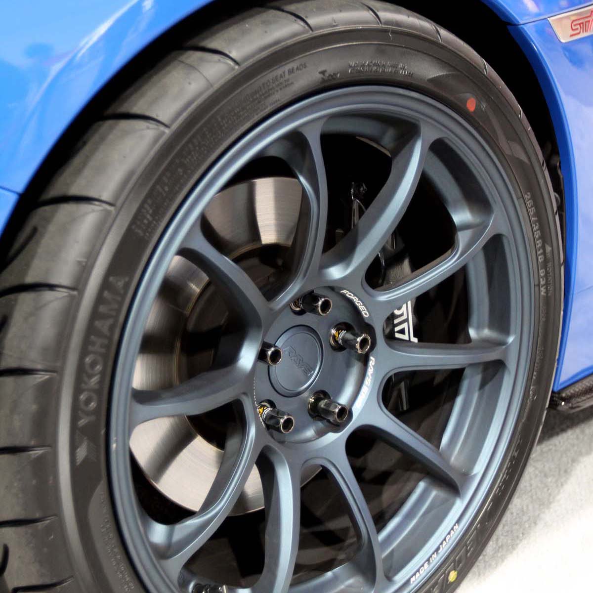 | 輪圈部分換上Rays ZE40專用規格,並且為了那將近60kgm的扭力換上4條AD08R來緊咬地面。 |