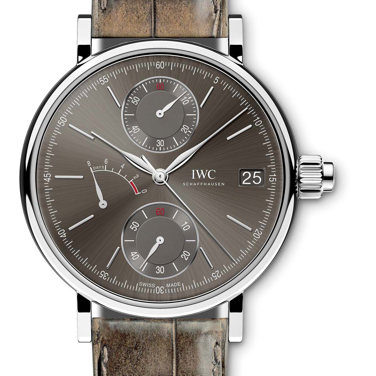 IWC旗下最有名的Portofino系列,今年又有新生力軍。這次是全新的單按把計時碼錶,腕錶機芯是從基礎款式59000型機芯演化而來,擁有8日動力儲存,和單按把啟動、停止、歸零計時輪系。8點鐘和9點鐘位置的動力儲存顯示尤其搶眼,加上60分鐘計時機制,這款腕錶可說是在外觀、功能間取得了完美的平衡。
