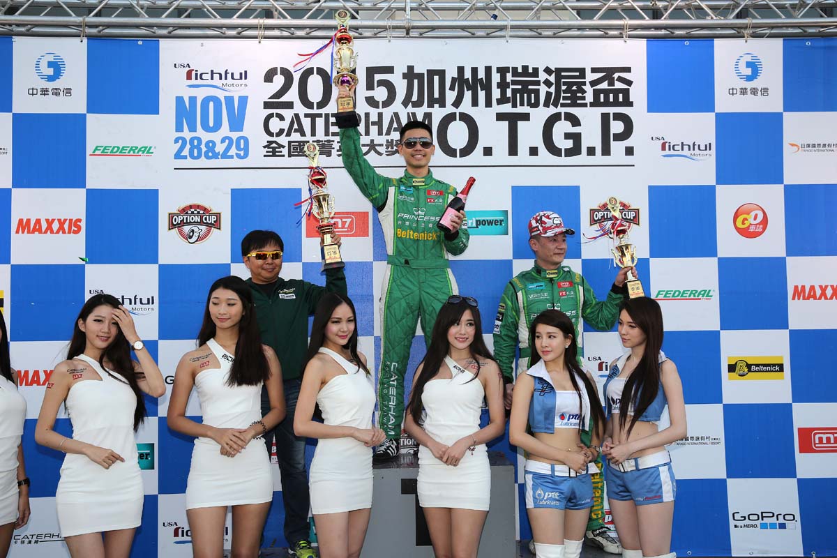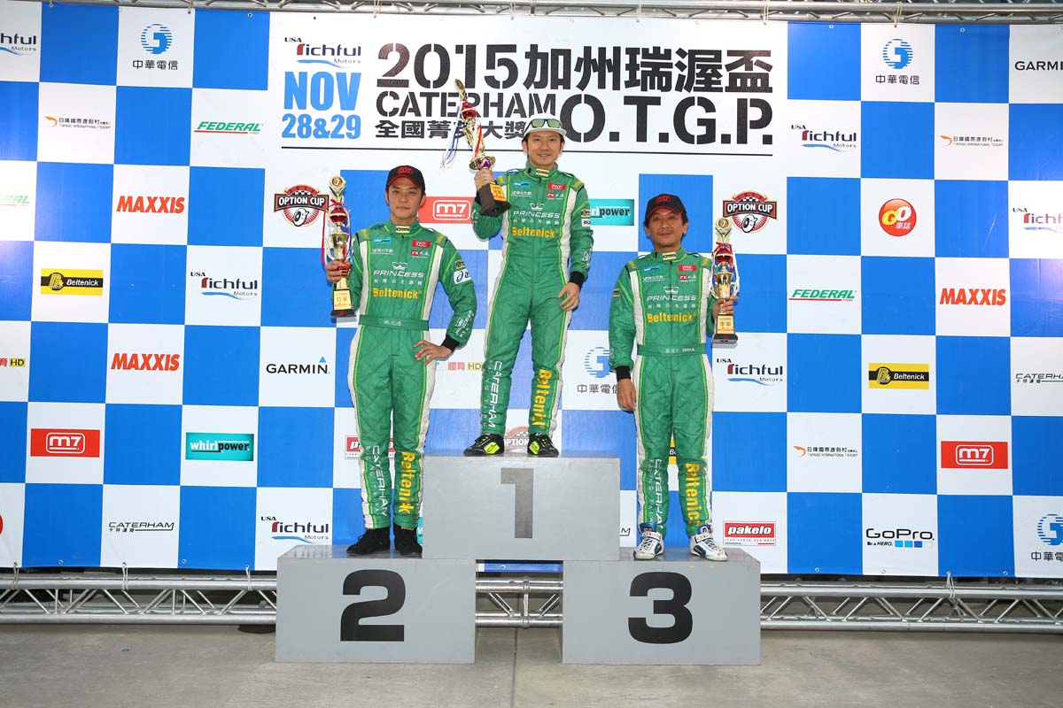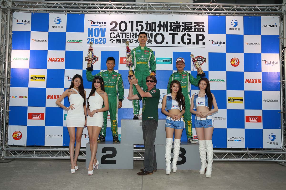 | CATERHAM R300台灣統一規格賽第三站職業組(週日)第一名黃于晏、第二名周哲男、第三名陳軍華。 |