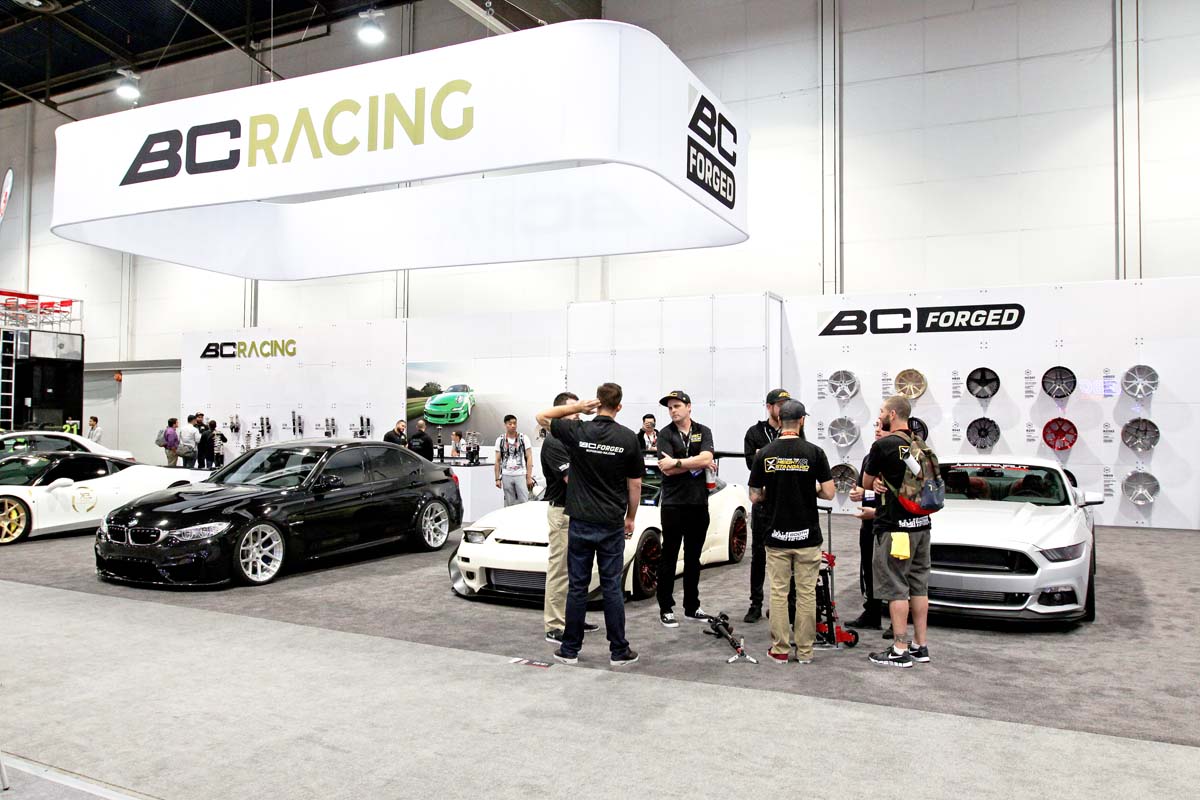 作為台灣懸吊與鍛造輪圈製造大廠的BC台灣柏釧,近年來除了成功將BC Racing Suspension與BC Forge Wheel推廣至全球市場,為了在美國市場持續向下紮根並且奠定品牌形象,這次大手筆的參展更是讓美國消費者對於產品有更進一步的了解,尤其眼見為憑的改裝方式已經是目前改裝市場上不可或缺的要素,為了讓買家能夠了解實際改裝的差異性,因此可以看到偌大的展覽會場特別找來多達六輛Demo Car,透過美系、日系、歐系、超跑與比賽車,充分展示各系產品最終的改裝效果。