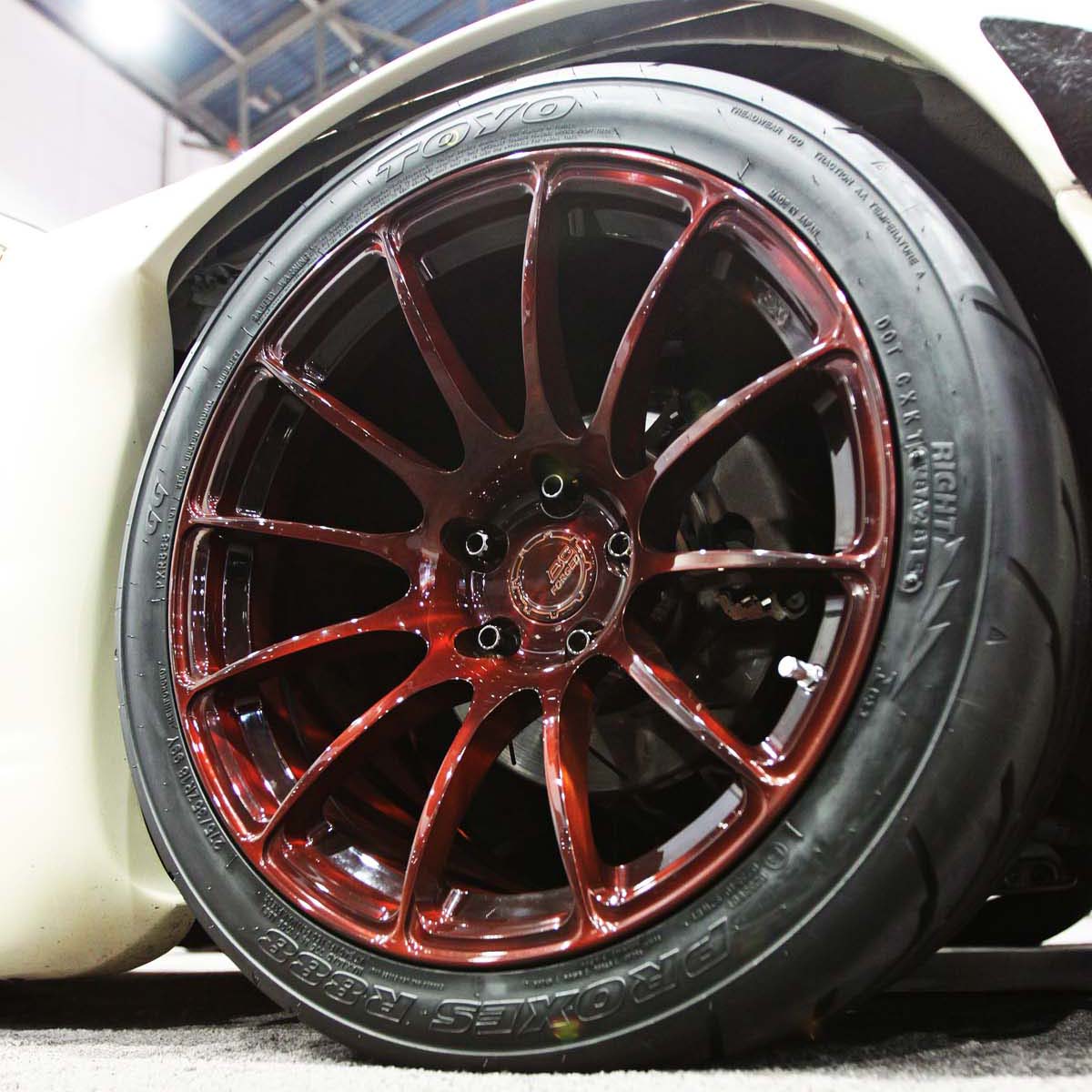 | 為了應付激烈的甩尾賽事,這輛Silvia S13特別採用倒插式設計的RM Series避震器,搭配魚眼上座可滿足操控玩家所需,而輪圈方面則是選擇18吋RS43單片鍛造品。 |