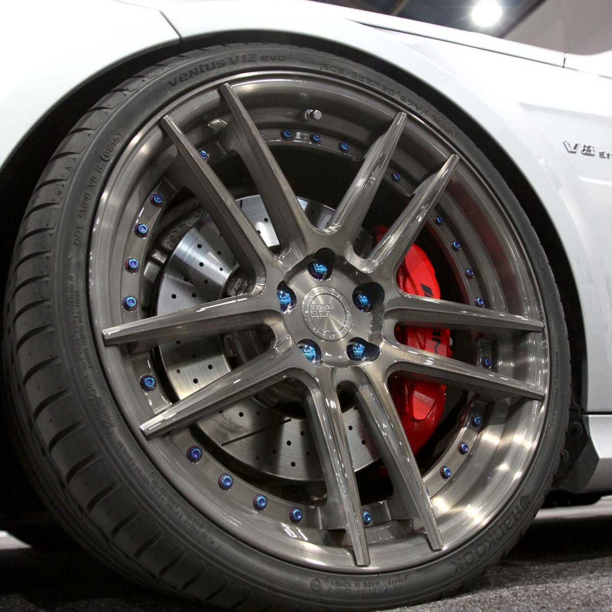 | 歐系車市場似乎在美國同樣很吃香,為了打響品牌名氣,剛剛上市不久的M.Benz C63同樣換上HCS02S雙片鍛造鋁圈,藉由藍色螺絲的配色來輕微點綴其獨特性。 |