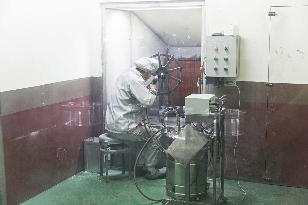 | 要完成漆面毫無瑕疵的輪圈,真空電鍍前素材的表面處理就格外重要,透過專業技術人員仔細檢查作最後把關才會進入真空電鍍機。 |