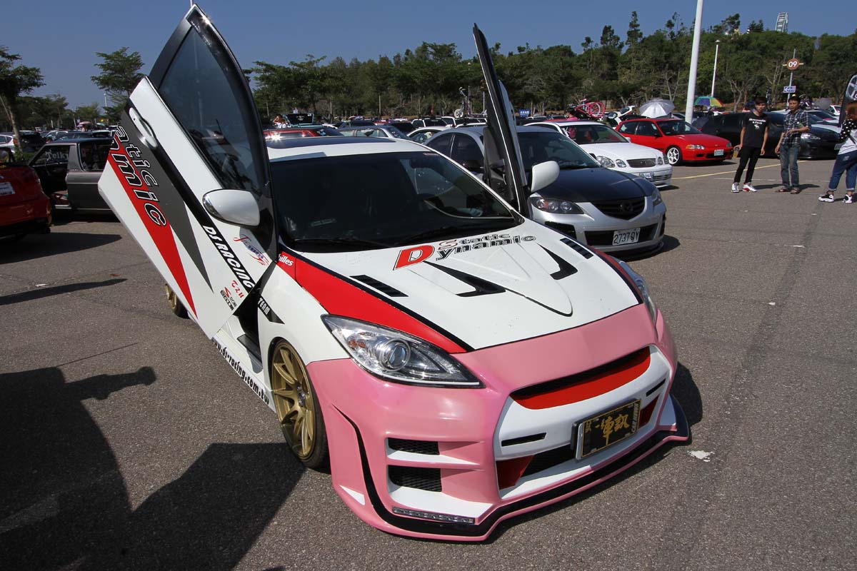 | 另外這部Mazda 3的外觀同樣改很大,類GT-R前保桿加上全車彩繪與鍘刀式車門,純粹「台式」改法,一樣很吸睛。 |