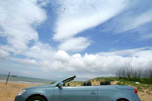 本次帶著我們前往海邊的主角就是「曙光女神」-VW EOS,它有著構造複雜的天窗/敞篷雙用硬頂,可以提供駕駛人Coupe/Roadster雙重享受,2.0 TFSI引擎與六速DSG變速箱的搭配讓它擁有輕快的動力表現,空間充裕的四座設計更是闔家出遊的好幫手。