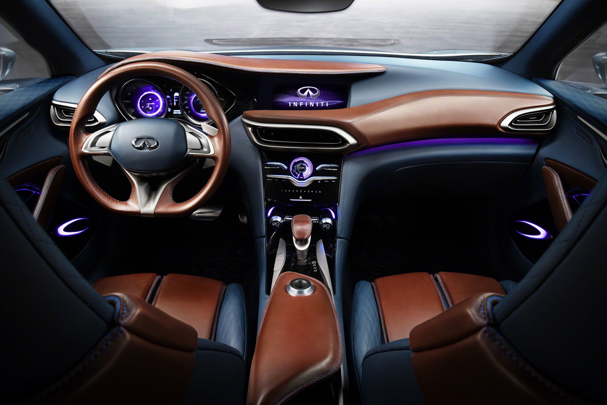 日內瓦車展多款眾所矚目的新車即將在此發表亮相,其中Infiniti品牌將推出全新跨界車款QX30,先前Infiniti僅公布車頭車尾照,如今原廠已釋出一系列關於QX30的照片。不同於市場跨界車款,QX30充滿強而有力的線條曲線,讓整體車身饒富運動感,甚至會讓人認為這是一款小型掀背車。外觀方面,QX30配置家最新水箱護罩,搭配如開口般的下氣壩及擾流式版,帶來充滿運動風格及地曠野感受。座艙在透過多處以皮革包覆後,呈現具有高級質感氛圍,雖然中控未採與現行車款相同的雙層螢幕設計,不過整體仍在現行車款基礎下進行修改,屆時量產版本相信會更接近市售車型座艙設計。動力方面,QX30搭載與Q50相同的2.0升渦輪增壓引擎及一具柴油引擎。QX30也預計在2016年以量產身分正式登場。