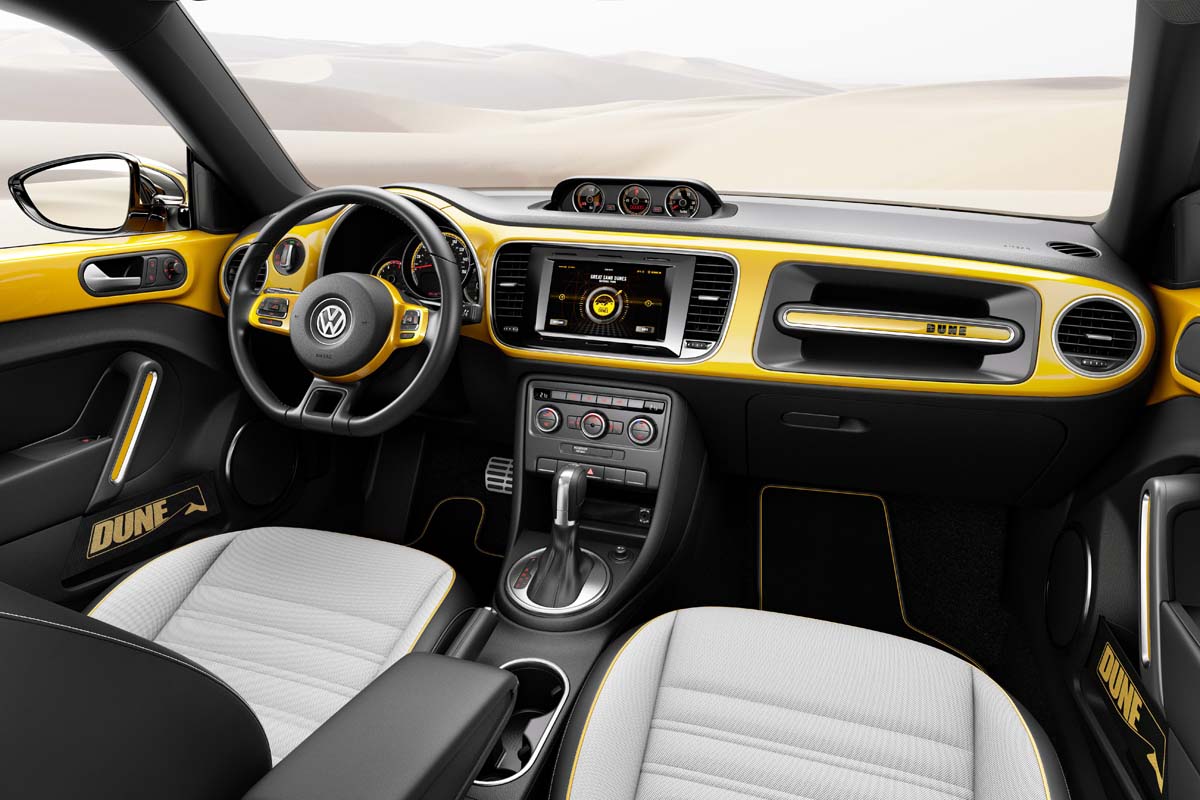 曾在2014年北美車展以Beetle Dune Concept打造的越野版金龜車,量產版去年底(2015年11月)在洛杉磯車展上現身。以挑高的車身、個性風格套件、雙門轎跑 / 敞篷雙車型,打造出不同以往的跨界休旅風。轎跑款國外建議售價約台幣82.9萬(23,625歐元)、敞篷約台幣97.5萬(27,800歐元)。這部跨界Beetle給人的第一印象,就是車頭較一般版更大的進氣壩與運動化的蜂巢式水箱格柵;而車側輪拱上的黑色防刮材質、車門下方延伸出的造型、側裙以及Dune銘牌等,也都為展現出戶外風格的設計元素;最後在車尾方面,與概念車不同的是取消了後窗上方與下方雙尾翼設計,而以雙色打造的大型單一尾翼、全新LED車尾燈與後下保桿畫下視覺上的句點。內裝將可見到VW集團最新的通訊娛樂系統,包括DAB+數位廣播、同時與二支手機配對的藍牙功能、可操作廣播 / 電話 / 多媒體的聲控系統以及整合式導航功能等。