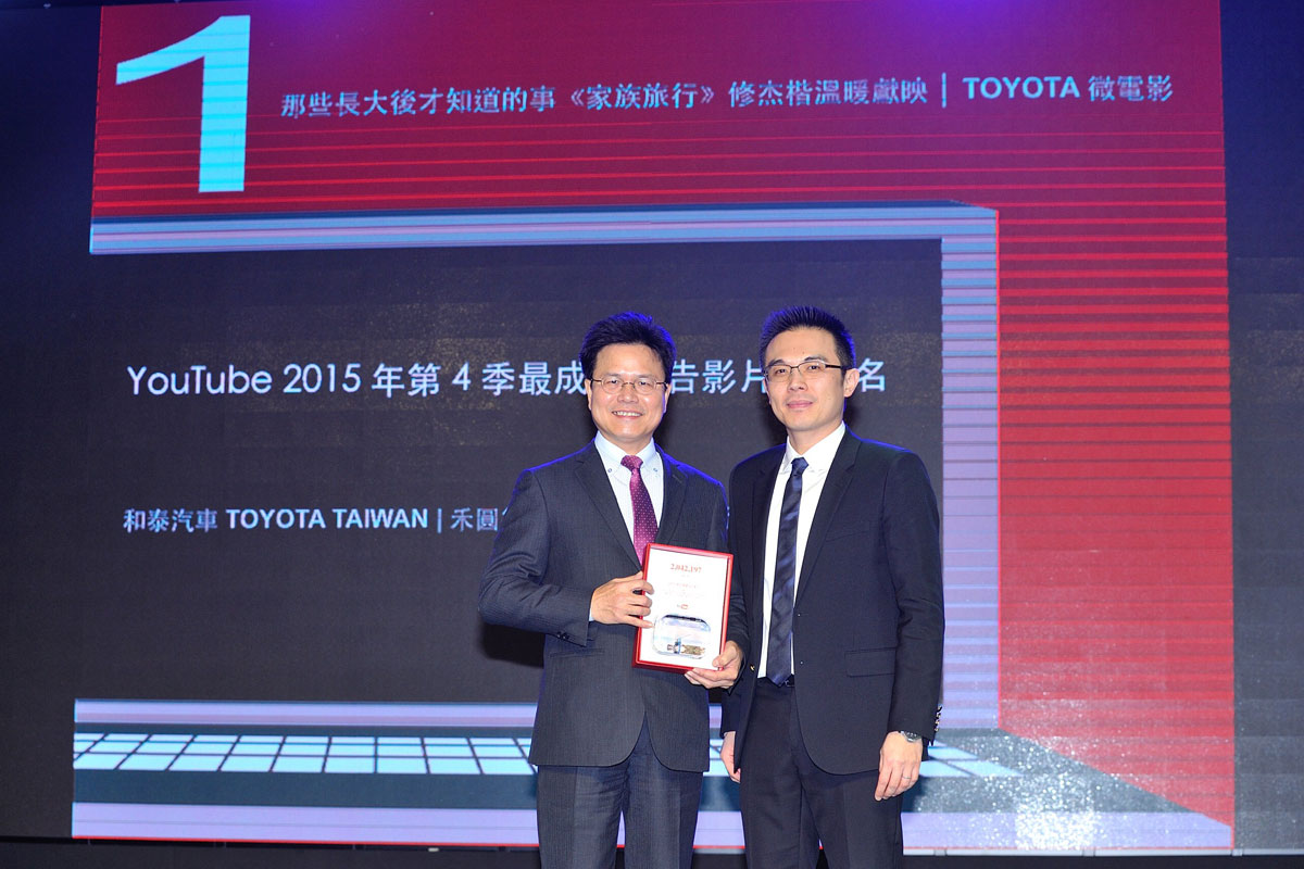 YouTube於1月27日公布2015年第四季「YouTube 台灣最成功廣告影片排行榜」,和泰汽車旗下TOYOTA品牌,分別以「家族旅行」及「媽媽的戰車」微電影,奪得第一名及第四名的榮耀。TOYOTA本次獲獎締造兩大紀錄,「首次由汽車品牌奪得最成功影片冠軍」,以及「首次由單一品牌於前五名中同時囊括兩個名次」,創汽車業界與YouTube歷屆以來的好成績,在在顯示TOYOTA微電影的高人氣,深受大眾肯定與分享,並感受TOYOTA傳遞品牌精神的用心。