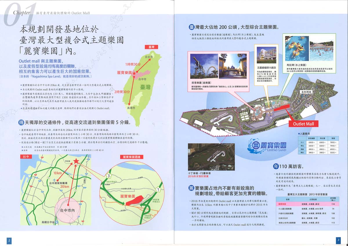 陳副董事長補充說到,麗寶樂園擁有得天獨厚的氣候與地理位置發展條件,除了鄰近擁有高鐵、台鐵、台中港與機場等海空大眾交通運輸設施之外,若是從台北開車出發駕車走中山高或北二高約需一個半多小時即可抵達,從南部高雄出發駕車也僅需二個半小時,使得麗寶成為不論從南或北部出發均可規劃為駕車一日遊的休閒觀光景點。正因如此,麗寶樂園目前園區內最重要的規劃是要建設與主題樂園、度假型設施擁有高度關聯與集客力巨大加乘效果的「Outlet Mall」,希望藉由不斷新設施的增設與複製日本在地的Outlet Mall經營成功經驗,營造友善的空間環境,帶給顧客更為充實的體驗。