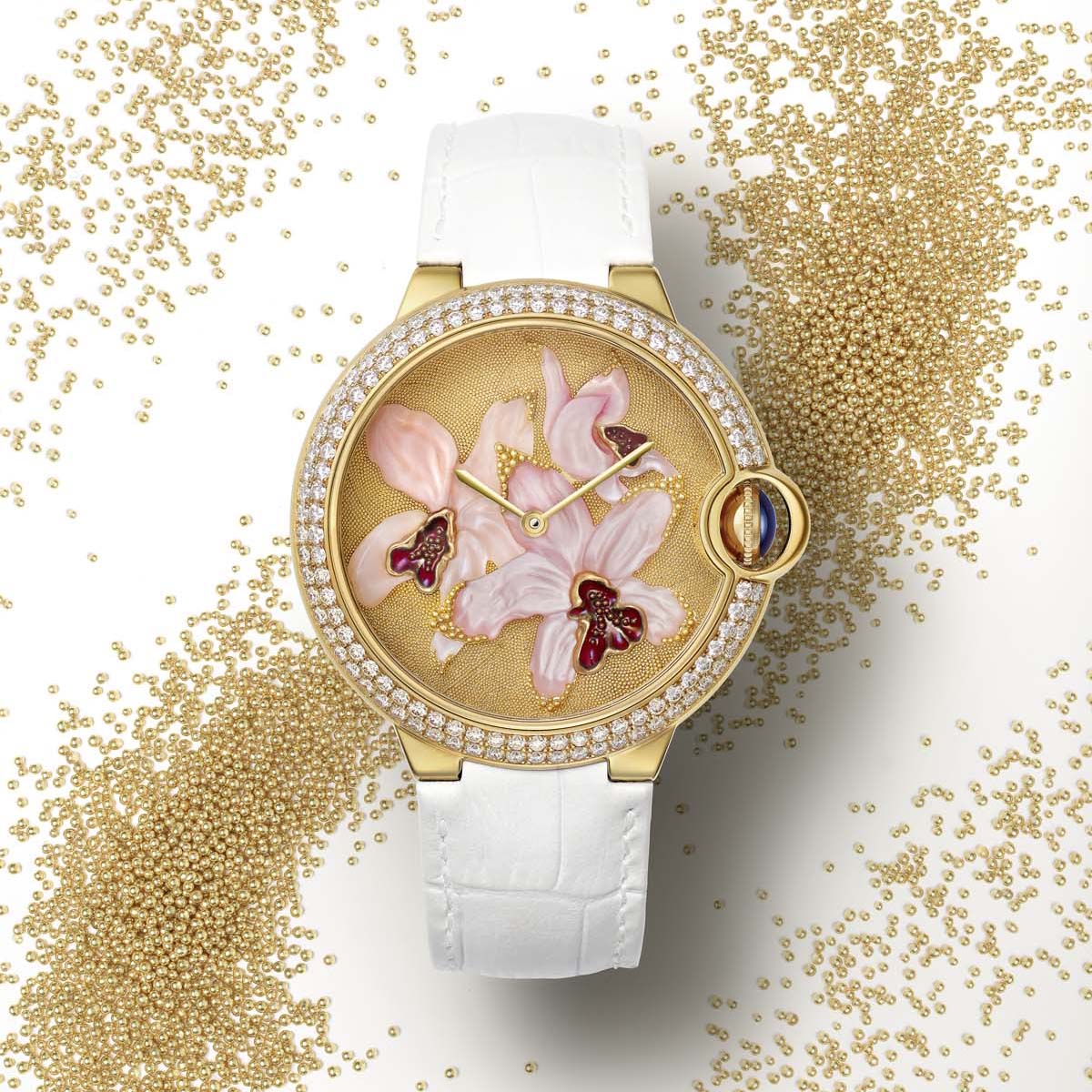 Ballon Bleu de Cartier蘭花裝飾金屬珠粒腕錶