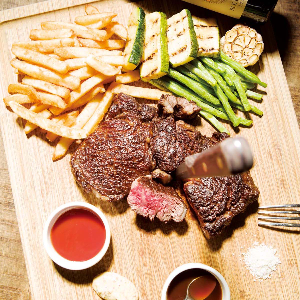 | 牛肉就該大塊朵頤,厚切肋眼與濃厚紅酒搭配堪稱是重量級聯姻。 |