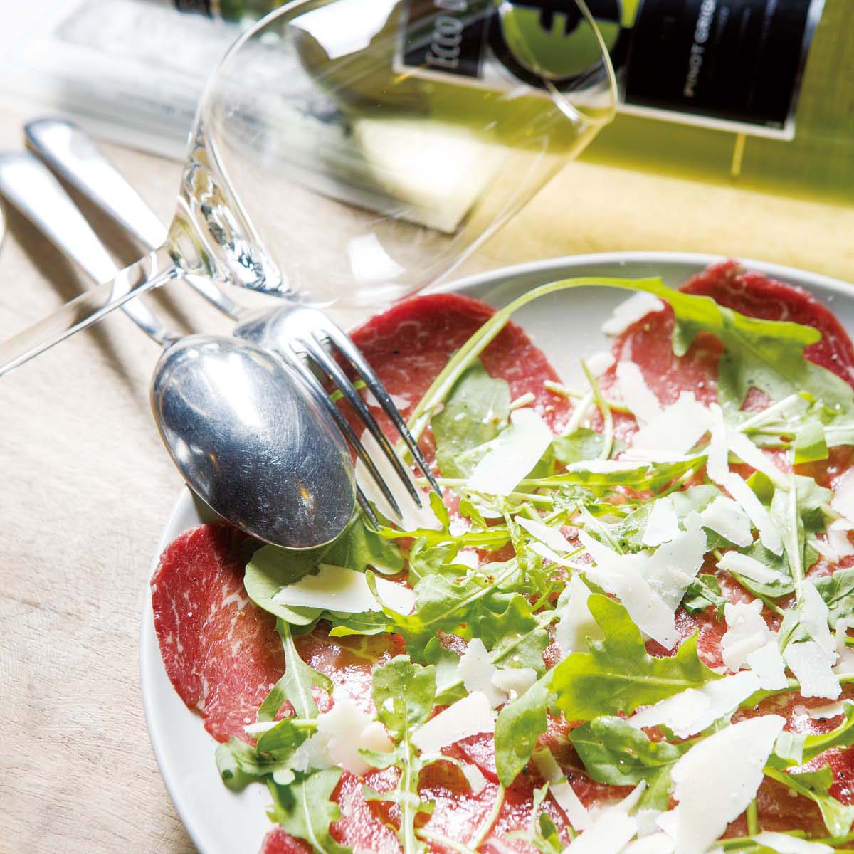 | 優雅的生牛肉與灰皮諾白酒相輔相成,尾韻有清新花香。 |