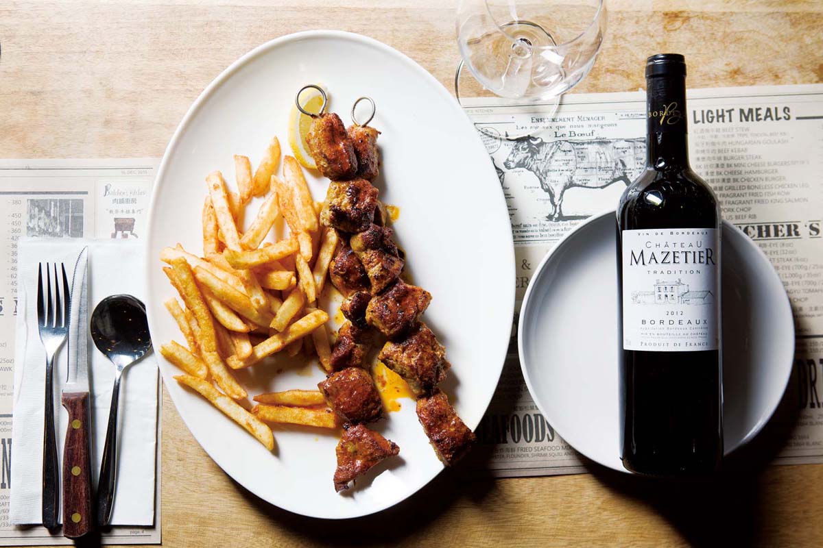 匈牙利燉牛肉使用菲力部位慢燉,紐西蘭羊排咬勁十足又不失鮮嫩,兩道菜皆以濃郁的香料為主調,在Moulin De Gassac 酒莊Guilhem紅酒的煙燻味後勁中,完美融成一體,宛如造就出另一道菜色,該酒莊採取有機種植與手工操作,以最大化表現出法國朗多克產區的獨特風土,卻又因相對涼爽的微氣候,能有條件釀出更頂級的美酒,Guilhem算是CP值相當高的酒款,再往上追求旗艦酒Mas de Daumas Gassac,則可嘗到自有葡萄園混合多個品種釀酒的自然酒古風精神。而法國波爾多Chateau Mazetier圓潤平衡的架構,加上平易近人的價位,是許多餐廳的house wine佐餐首選,一口酒,一口撕咬用小牛里肌醃以香料串烤的肉塊,十足過癮!