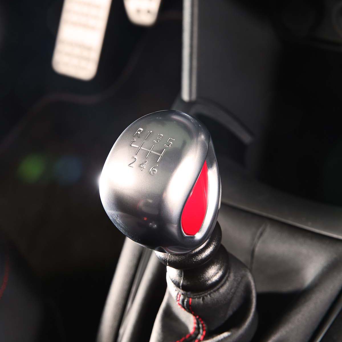 | GTi專用金屬排檔頭造型相當與眾不同,不過實際使用上無論是正握還是側握都沒有違和感。 |