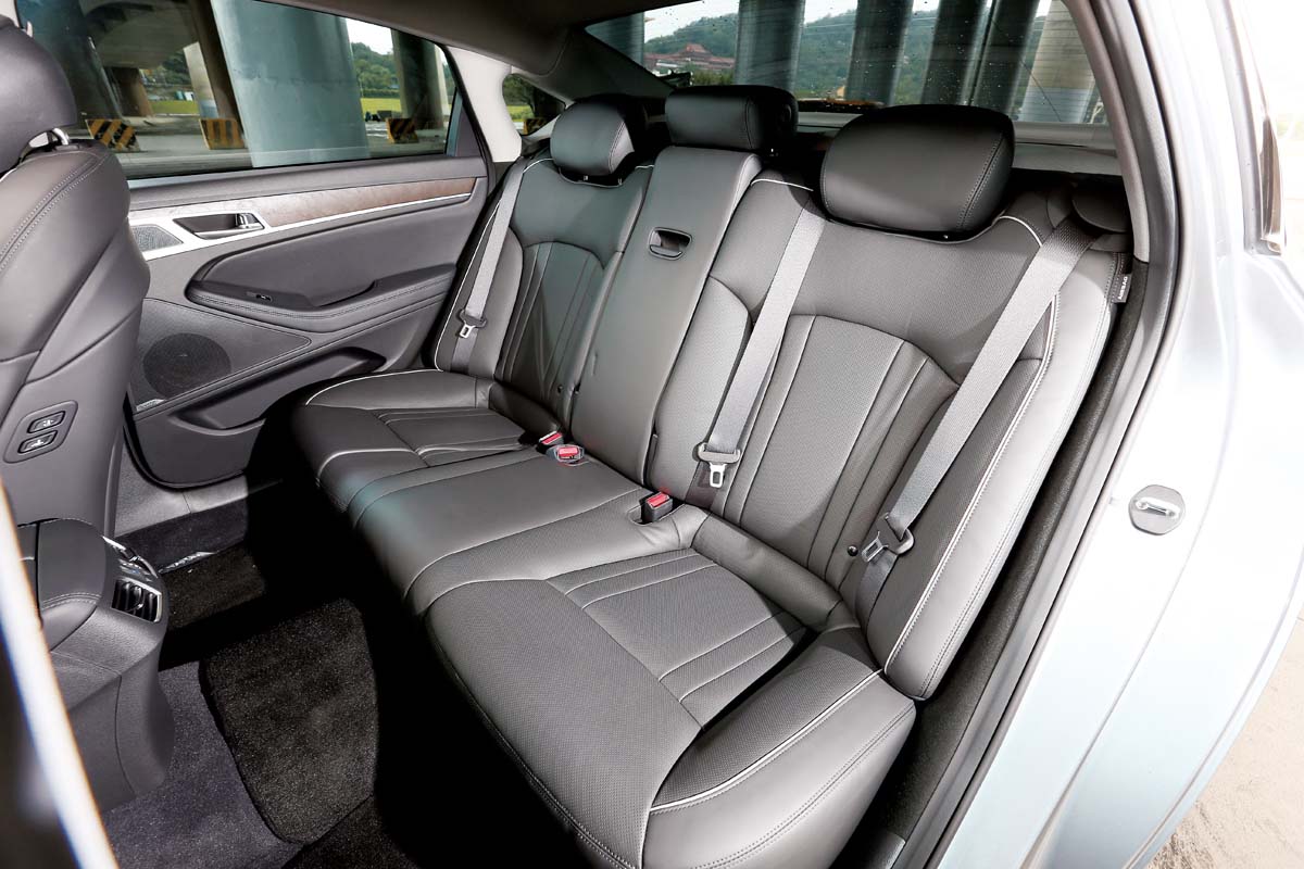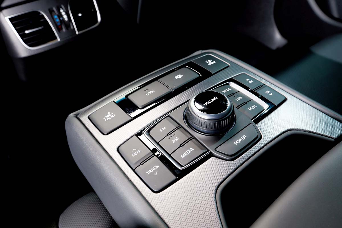 將近5m的悠長車身,多少為Genesis帶來後座買家專屬黑頭車的印象,但坐在後座上,仍可感受到Hyundai賦予Genesis自駕轎車的性格;包括後座椅三顆頭枕、後方中央與兩側落差不大的椅面設計,都是對中央乘客親切的設計。儘管如此,三區恆溫空調,後座中央扶手音響按鍵、後遮陽簾等設計,也兼顧了後座老闆的需求,後座扶手還可控制副駕駛座椅的傾角與前後位置,為右後方座椅爭取舒適且操之在我的乘坐空間。