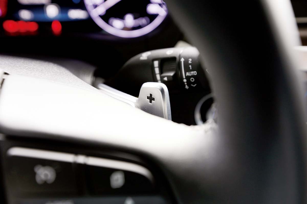 | 方向盤後的換檔撥片讓駕駛能更自由地控制轉速。 |