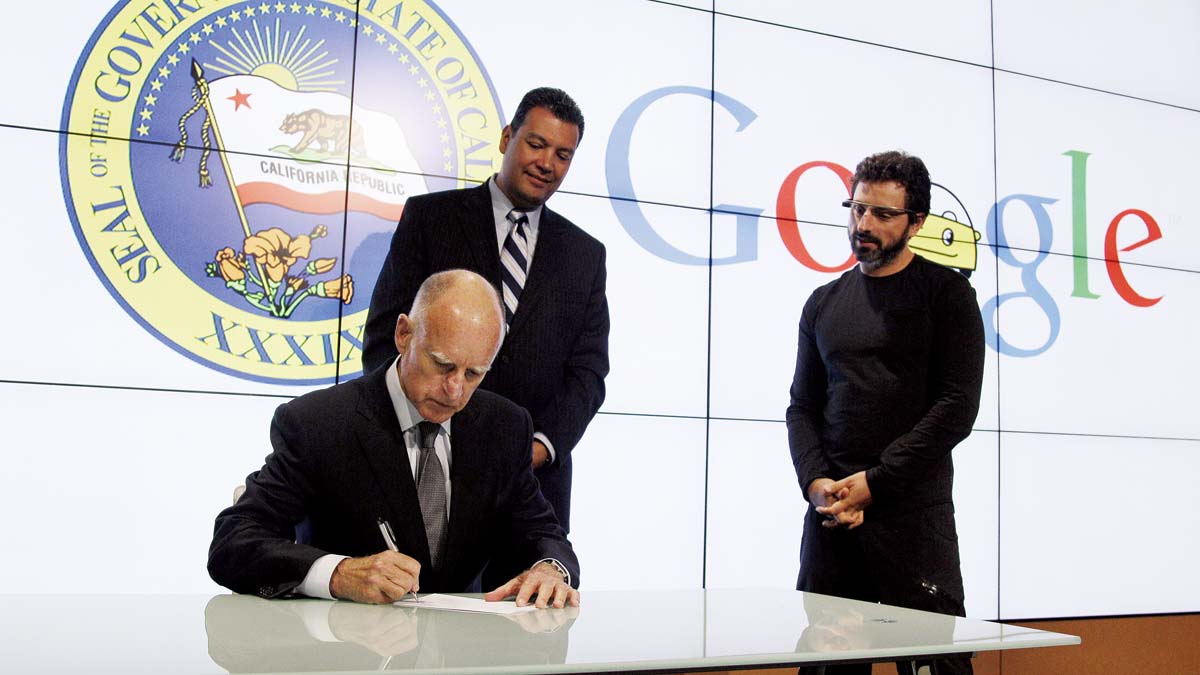 | 2012年在軟體巨頭Google的大力支持下,加州州長Jerry Brown簽署的新法律允許自動駕駛車輛(至少在測試基礎上)能在美國人口最多的加州正式合法上路,截至2015年12月初,已有11家公司取得該局核發的自動駕駛車道路測試許可。 |