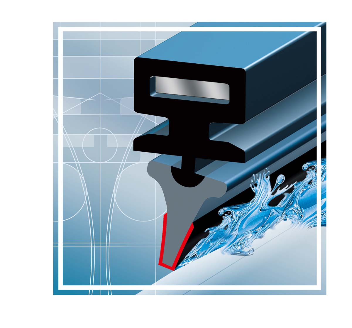 | 等級較好的雨刷膠條會採雙材質設計,讓膠條同時具有作動柔軟度與刮拭時所需硬度力道。 |