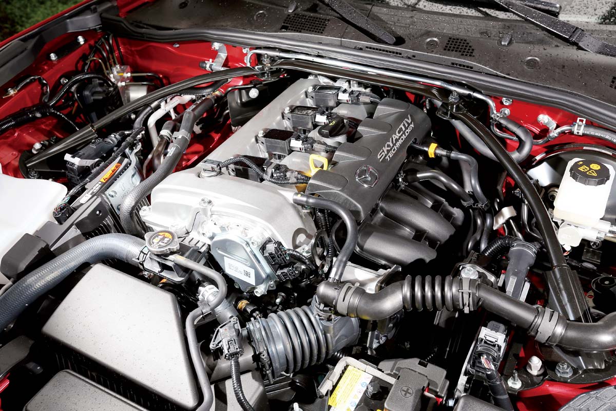 任何車在經歷世代演化後,皆會較先前車型有所進化,但MX-5就像時間靜止凍齡般毫無進化,依舊維持手動軟篷、動力也沒有大幅升級、車身配重仍是強調操控的50:50完美比例,甚至車身尺碼還比以往車型更小,車身由於利用大量鋁合金打造,因此車重也較以往更輕。或許新世代MX-5外觀跟以往不太相同,但你依舊能一眼就能認出它是MX-5,雖多了電子安全配備,但骨子裡仍是當年讓車主們樂道的駕馭個性。