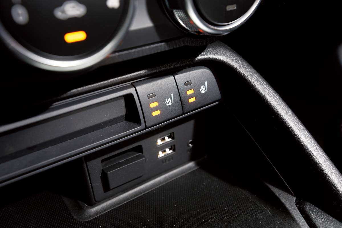 | 運動化座椅在操駕時提供一定的包覆支撐性,且還附有加熱功能。 |
