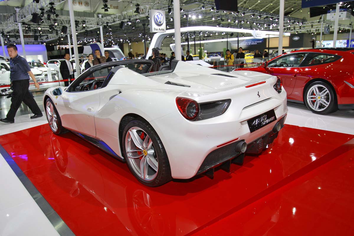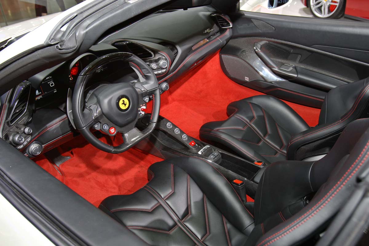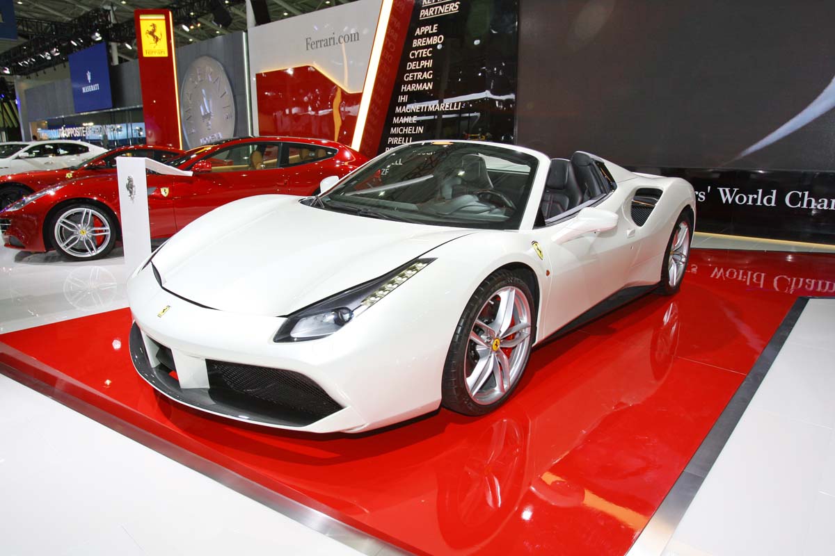 Ferrari 488 Spider在488 GTB推出之後就立即跟上,可以讓想到體驗雙渦輪超跑的朋友們,立即多了一種選擇。從外觀上看來,488 Spider與488 GTB並沒有太大的差異性,不過畢竟是敞篷車型,車頂與中置引擎上方引擎蓋的線條肯定與488 GTB不同,其實488 Spider所使用的硬頂敞篷設計與458 Spider相同,只要14秒就能完成頂蓬開閉動作,不論車頂是否打開,488 Spider皆能展現婀娜多姿的曲線。內裝部分則是與488 GTB相同,所有按鈕與功能鍵都被設置於中控台周圍,完全是以駕駛者為中心,就像量身訂做一樣,所有的內裝飾板均由手工打造而成,兼顧質感與運動特性;488 Spider所搭載的運動訊息娛樂系統,整合了導航、娛樂等所有功能,同樣的,所有功能鍵皆讓駕駛者觸手可得,兼具功能性與設計美學。動力部分當然與488 GTB相同,搭載一具3.9L的雙渦輪引擎,670hp最大馬力,加上在3000rpm就能爆發的77.5kgm最大扭力,從靜止加速到100km/h僅需3秒,加速到200km/h也只要8.7秒,不過敞篷車型在補強車身剛性後增加了50kg的重量,極速比488 GTB減少了4km/h為326km/h。