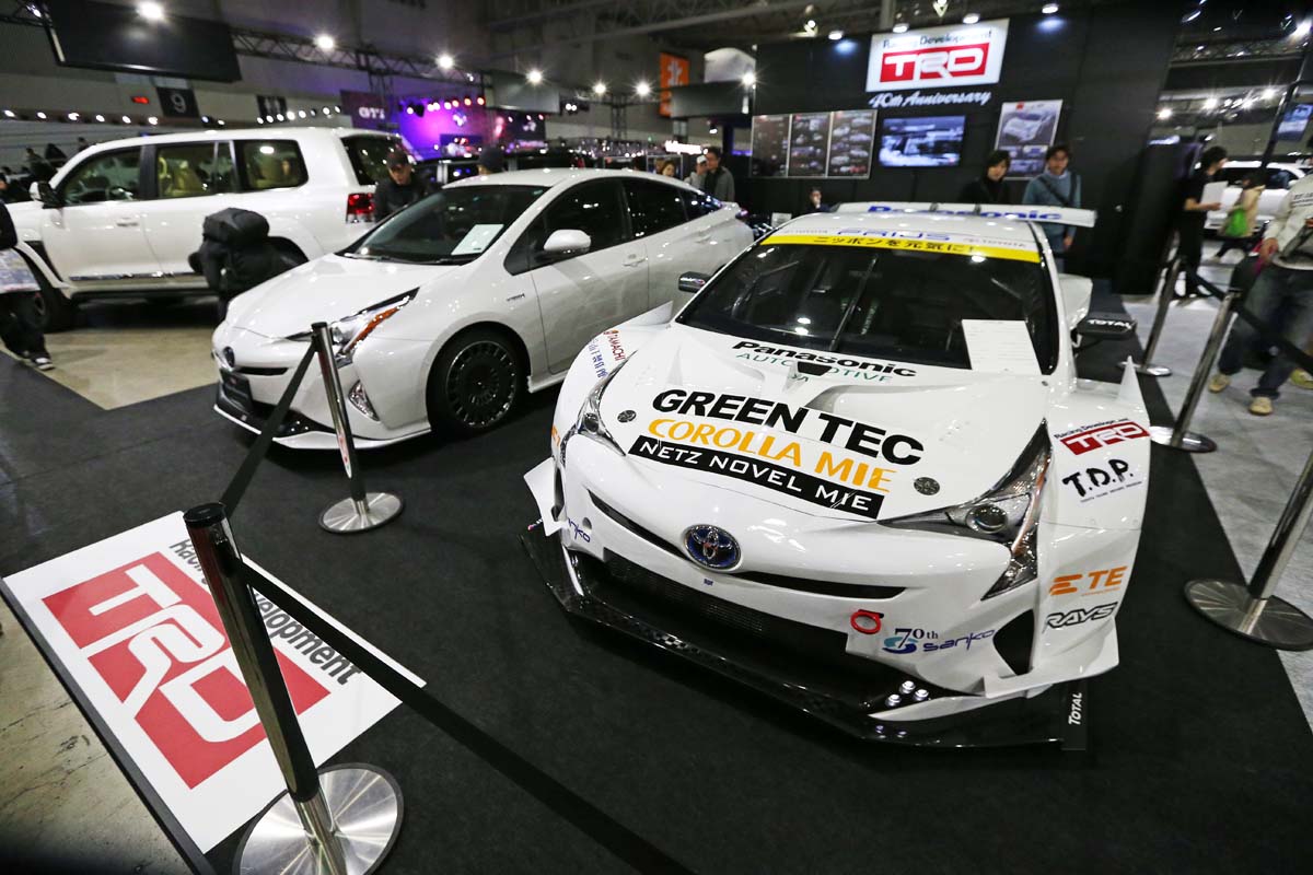 | 在日本大人氣的4代目Prius,TRD也將自家目前在GT300參戰的Prius給帶到現場內,並且與原廠Prius放在一起看起來更加具有視覺震撼。 |