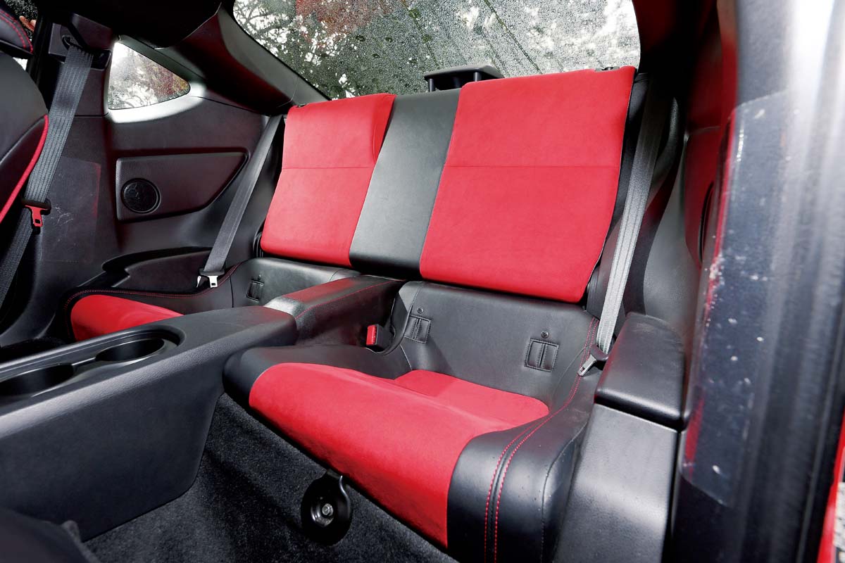 | 86的紅黑座椅除帶來視覺效果外,其包覆性也較MX-5來得出色,而2+2配置則無法坐人,用於個頭小、小孩或置放物品剛好而已。 |