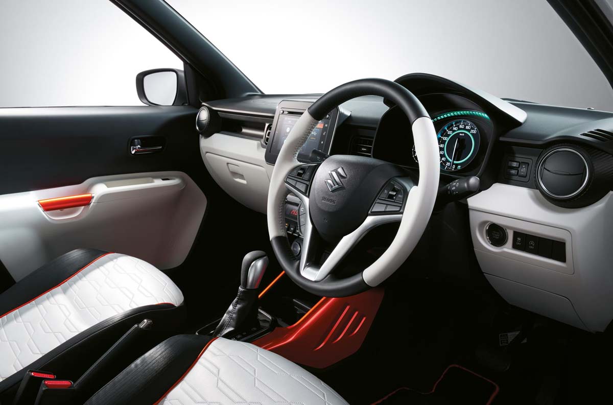 本次東京改裝車展Suzuki特別推出Ignis Water Activity概念車款,整體外形如同其名般,在車頂放置一具獨木舟,前保桿也設置固定獨木舟繩索的掛鉤,從車輛外觀就可看出原廠強調Ignis多用途的使用機能,並將車色烤漆成墨綠色,搭配橘紅色線條點綴的水箱護罩、前保桿、後視鏡、車側側裙等,添加年輕運動化的感覺,另外原廠也在前保桿和車側側裙的下緣的防刮材質改成霧銀飾條,保持車身質感。